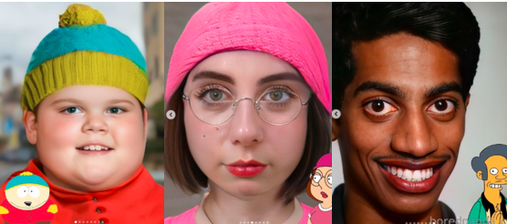 Si alguna vez te has puesto a pensar en la apariencia de Eric Cartman, el niño regordete y mal humorado de la serie animada de South Park como humano, aquí lo verás junto a otros personajes como Meg Griffin de Padre de Familia o el solitario Moe de Los Simpson que son traídos a la red gracias a la inteligencia artificial.