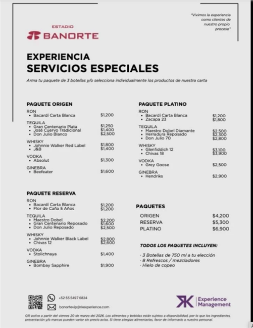 Los reportes preliminares sobre la oferta gastronómica dentro del inmueble reflejan un incremento notable en los precios de productos básicos de estadio. La estructura de costos se divide principalmente en consumo de grada y servicios especializados para zonas de palcos.