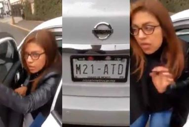 Sin embargo, el caballero que graba no se lo permite pues asegura se va a dar a la fuga. Mientras el sujeto le dice que llame a su seguro, ella comienza a gritar, dice que va a perder su trabajo si no se va, pero ante la insistencia del hombre, ella sostiene que se meterá al automóvil para contactar el seguro.
